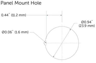 パネルの厚さは最大25.4 mmです。バルブを取り付けるには、パネル取り付け用ナットを取り外して、バルブをパネルに差し込みます。バルブにパネル取り付け用ナットを4.5 N•mのトルクで締め付けるか、手締め後に1/8回転締め付けます。