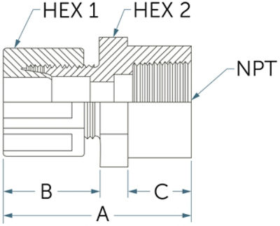| FC8-12N | 12.7 mm (1/2") インテグラルフェルール | 3/4 NPTメス | 10.9 mm | 50.8 mm | 26.7 mm | 17.0 mm | 23.81 mm | 30.16 mm |