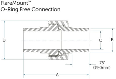 | WU12SP-FM-1X | 3/4" ピュアボンド パイプ | フレアマウント O-リングなし | PFA HP Plus | PVDF |
